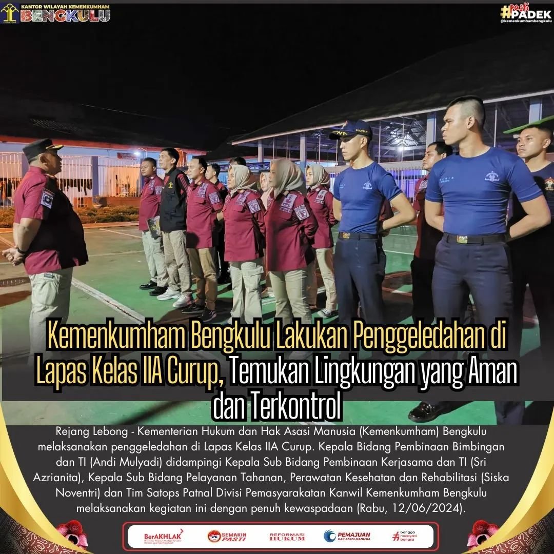 Advertorial | • Oleh (A.Sng) • 14 Juni 2024 • Kemenkumham Bengkulu Lakukan Penggeledahan di Lapas Kelas IIA Curup, Temukan Lingkungan yang Aman dan Terkontrol RejangLebong, -Derap1News. Kementerian Hukum dan Hak Asasi Manusia (Kemenkumham) Bengkulu melaksanakan pemeriksaan dan penggeledahan terhadap...
