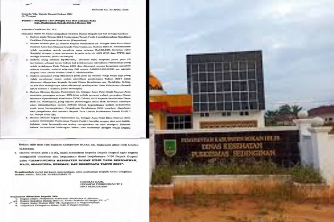 Rokan Hilir | • Oleh Chan • 28 Mei 2025 • 14 Dilihat • Diduga Terjadi Pungli di Puskesmas Tanah Putih I, ASN Honor Diancam Jika Menolak Bayar Rokan Hilir, derap1news – Praktik pungutan liar (pungli) diduga terjadi di UPT Puskesmas Tanah Putih...