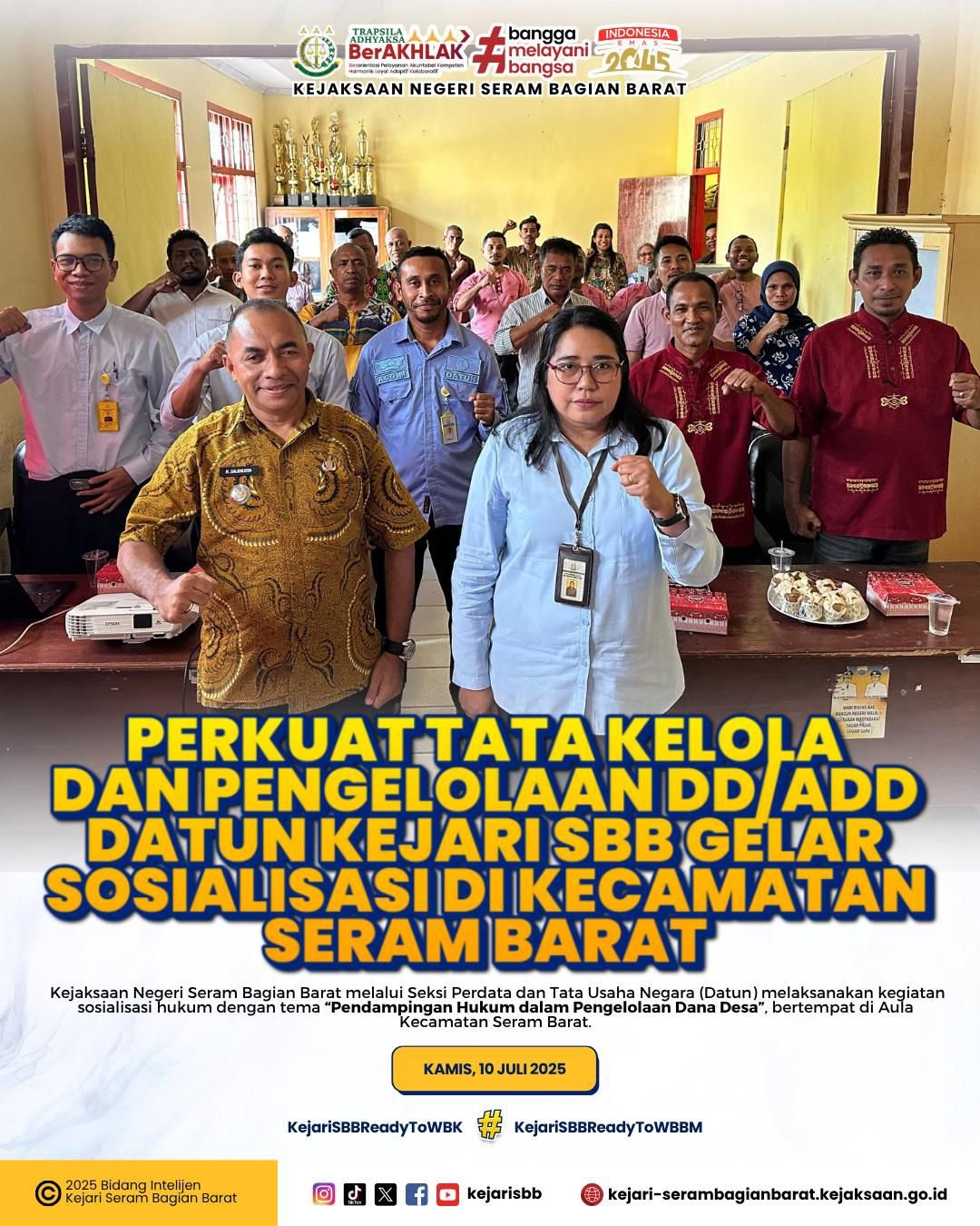 Mitra Derap1news | • Oleh Chan • 10 Juli 2025 • 1 Dilihat • Kasi Datun Kejari SBB Gelar Sosialisasi Pendampingan Hukum Pengelolaan Dana Desa di Kecamatan Seram Barat Piru, derap1news – Kejaksaan Negeri Seram Bagian Barat melalui Seksi Perdata dan Tata Usaha Negara...