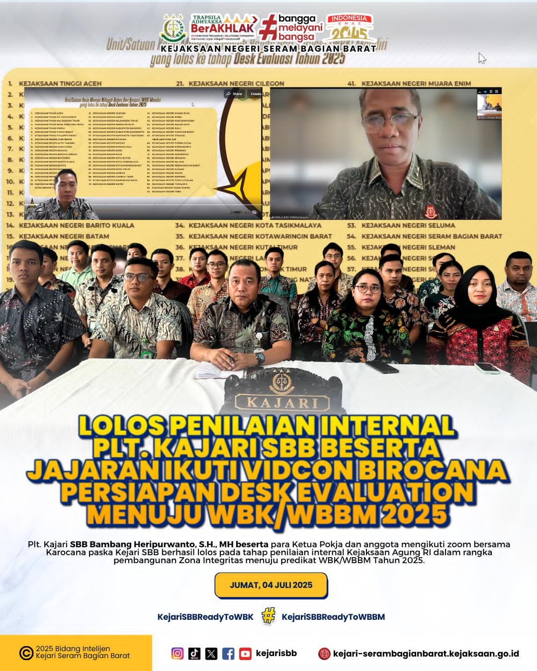 Mitra Derap1news | • Oleh (A.Sng) • 4 Juli 2025 • 3 Dilihat • Kejari Seram Bagian Barat Lolos Penilaian Internal WBK/WBBM 2025, Siap Jalani Evaluasi Lanjutan SBB,Piru, Derap1News – Kejaksaan Negeri (Kejari) Seram Bagian Barat menorehkan capaian membanggakan dengan berhasil lolos dalam...