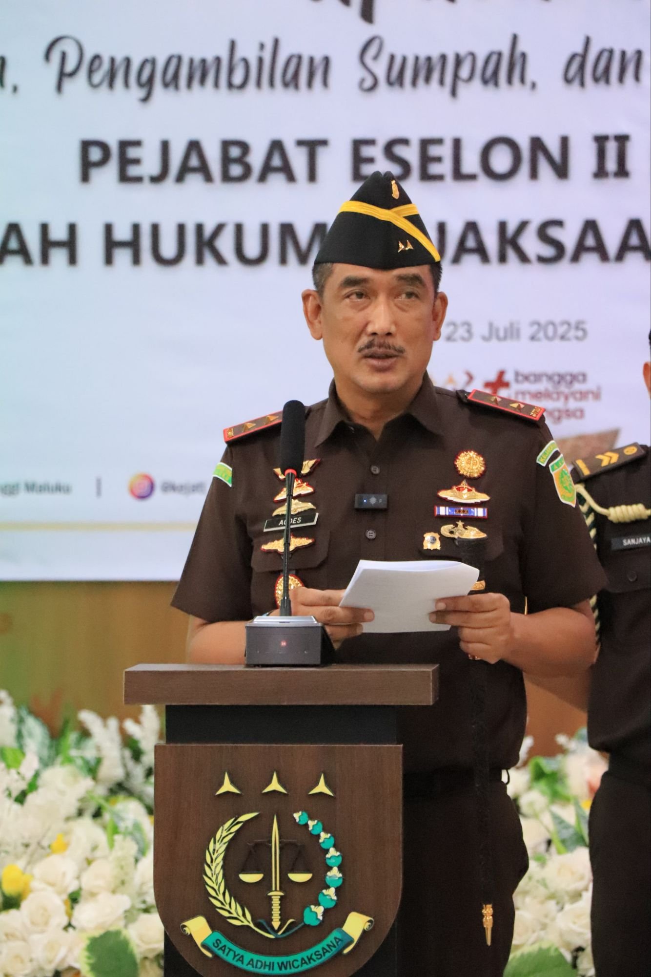 Mitra Derap1news | • Oleh Chan • 23 Juli 2025 • 1 Dilihat • Kajati Maluku Agoes SP Lantik Pejabat Esselon II dan III Lingkup Kejaksaan Tinggi Maluku. MALUKU – Ambon, derap1news – Kepala Kejaksaan Tinggi Maluku Agoes Soenanto Prasetyo, S.H.,M.H, resmi melantik...