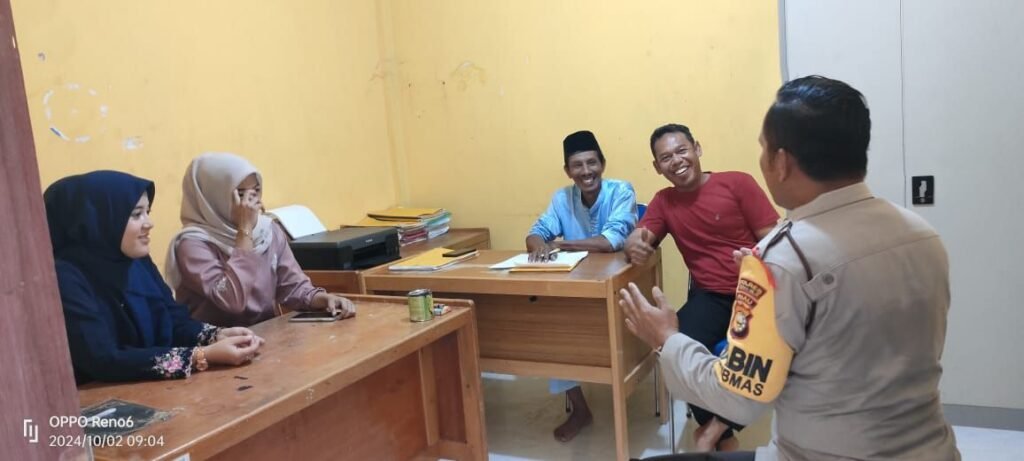 Rimba Melintang, derap1news – Guna menjaga situasi keamanan dan ketertiban masyarakat (Kamtibmas) dalam menghadapi Pemilu 2024, Polsek Rimba Melintang, melalui Bhabinkamtibmas Aipda M. Sianturi, melaksanakan kegiatan Cooling System Pemilu Damai pada Selasa (02/10/2024) di Kantor Penghulu Desa Lenggadai Hulu, Kecamatan Rimba Melintang, Kabupaten Rokan Hilir.