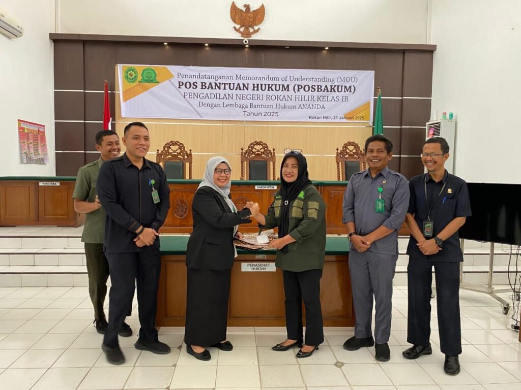 Rokan Hilir, derap1news – Pengadilan Negeri Rokan Hilir ( PN Rohil ) kembali secara resmi untuk ke 12 (dua belas) kalinya sejak tahun 2013 melakukan penandatanganan perjanjian kerja sama ( MoU) dengan Lembaga Bantuan Hukum ( LBH) ANANDA terkait Pos Bantuan Hukum (posbakum) bagi masyarakat tidak mampu.