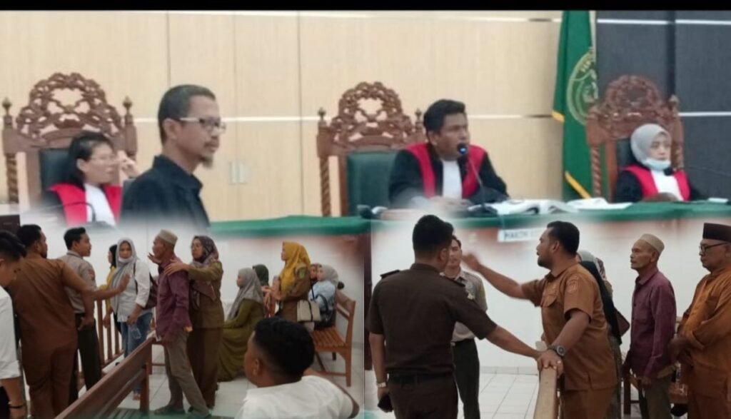 Rokan Hilir, derap1news – Suasana sidang kasus pembunuhan seorang anggota polisi dengan terdakwa Marselinus Kuku alias Marsel di ruang sidang Cakra, Pengadilan Negeri (PN) Rokan Hilir, Riau Selasa (26/8/2025), berubah ricuh. Rasa haru bercampur amarah keluarga korban tak terbendung saat sidang yang digelar secara daring tidak berjalan lancar.