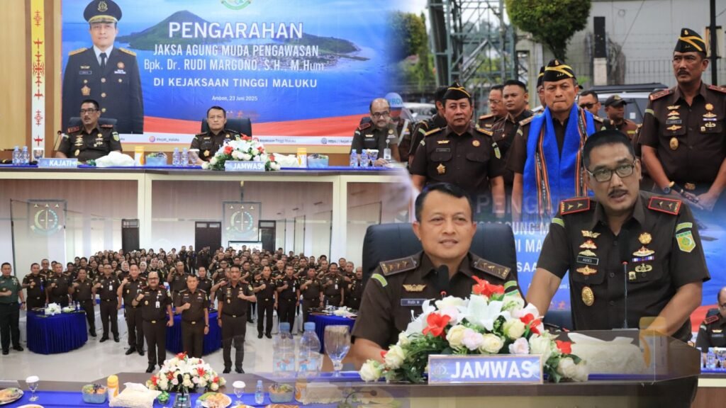Ambon, derap1news – Dalam mendukung tercapainya tugas dan fungsi Kejaksaan Republik Indonesia, Jaksa Agung Muda Pengawasan (JAMWAS) Kejaksaan Agung Republik Indonesia Dr. Rudi Margono, S.H.,M.Hum beserta rombongan, tiba di Kota Ambon melalui Bandara Internasional Pattimura Ambon, dalam rangka Program Kerja Pengawasan Tahunan (PKPT) tahun 2025 yakni Kunjungan Inspeksi Pimpinan diwilayah Kejaksaan Tinggi Maluku, pada hari ini Senin (23/06/2025)