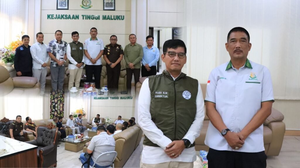 MALUKU, derap1news – Kepala Kejaksaan Tinggi Maluku Agoes Soenanto Prasetyo, S.H.,M.H bersama jajarannya menerima kunjungan silaturahmi Direktur Penindakan Pidana Kehutanan pada Kementerian Lingkungan Hidup dan Kehutanan (KLHK) Republik Indonesia Rudianto Saragih Napitu, S.Si.,M.Si diruang rapat Kejaksaan Tinggi Maluku, pada hari ini Kamis (25/9/2025).