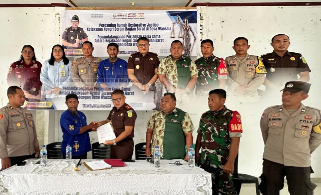 Penandatanganan ini dipimpin langsung oleh Kepala Kejaksaan Negeri Seram Bagian Barat, Anto Widi Nugroho, S.H., M.H., bersama Kepala Desa Waesala Ramsal Kasturian, dengan disaksikan Kasi Datun Sesca Taberima, S.H., M.H., serta para pejabat struktural Kejari SBB, tokoh agama, dan tokoh masyarakat setempat.