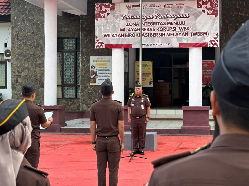 SBB, derap1news – Plt. Kepala Kejaksaan Negeri Seram Bagian Barat Bambang Heripurwanto, S.H., M.H memimpin giat apel rutin senin pagi diikuti oleh seluruh Jajaran Pegawai di Halaman Kantor Kejari SBB .