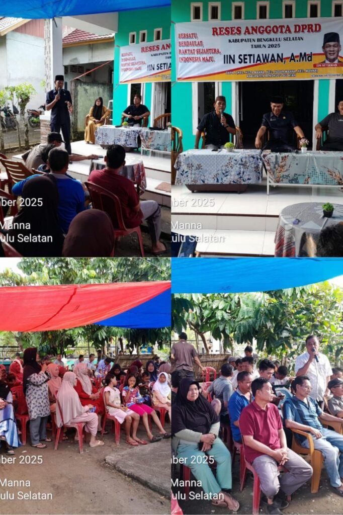 Bengkulu Selatan, derap1news – Anggota DPRD Bengkulu Selatan, Iin Setiawan,A.md.melaksanakan kegiatan Reses Pada hari Senen (15/12/2025) dalam rangka menjaring aspirasi masyarakat di Desa Pagar Dewa,kecamatan Kota Manna  Kabupaten Bengkulu Selatan.Di (Dapil) 1