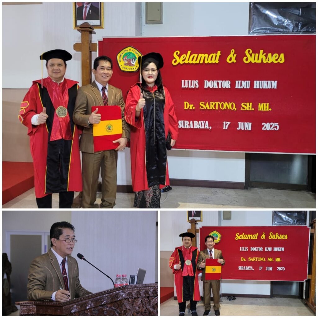 Sartono, S.H., M.H. Resmi Sandang Gelar Doktor Ilmu Hukum dari Kampus Merah Putih UNTAG Surabaya