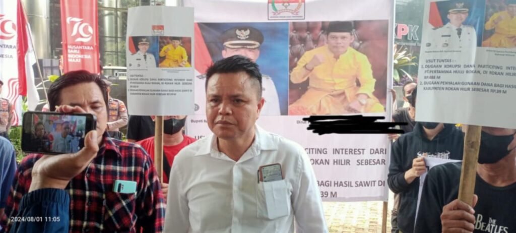 “Kami meminta KPK mengusut dugaan penyalahgunaan dana particing interest (PI) dari PT Pertamina Hulu Rokan (PHR) sekitar Rp488 miliar dan dana bagi hasil sawit sebesar Rp39 miliar,” ujar Ganda Mora, saat berunjuk rasa di depan Gedung KPK, Jakarta, Kamis (1/8/2024).