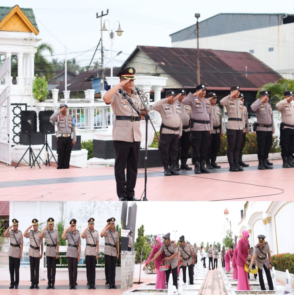 Rokan Hilir, derap1news – Dalam rangka menyambut Hari Ulang Tahun (HUT) Bhayangkara ke-79 tahun 2025, Kepolisian Resor (Polres) Rokan Hilir melaksanakan Upacara Ziarah dan Tabur Bunga di Taman Makam Pahlawan (TMP) yang terletak di Jalan Utama, Kelurahan Bagan Barat, Kecamatan Bangko, Kabupaten Rokan Hilir, Senin pagi (23/6/2025) sekitar pukul 08.00 WIB.