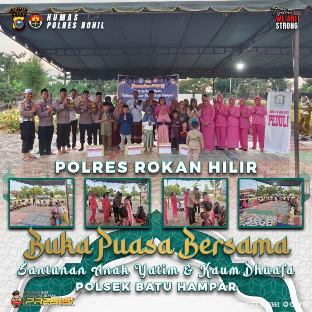 Polsek Batu Hampar Polres Rohil telah melaksanakan kegiatan buka puasa bersama sekaligus pemberian bingkisan kepada Dhuafa dan anak yatim di Mapolsek Batu Hampar. Kegiatan ini dilakukan sebagai bentuk kedekatan Polri dengan masyarakat guna terciptanya Citra Polri yang positif di tengah Masyarakat.