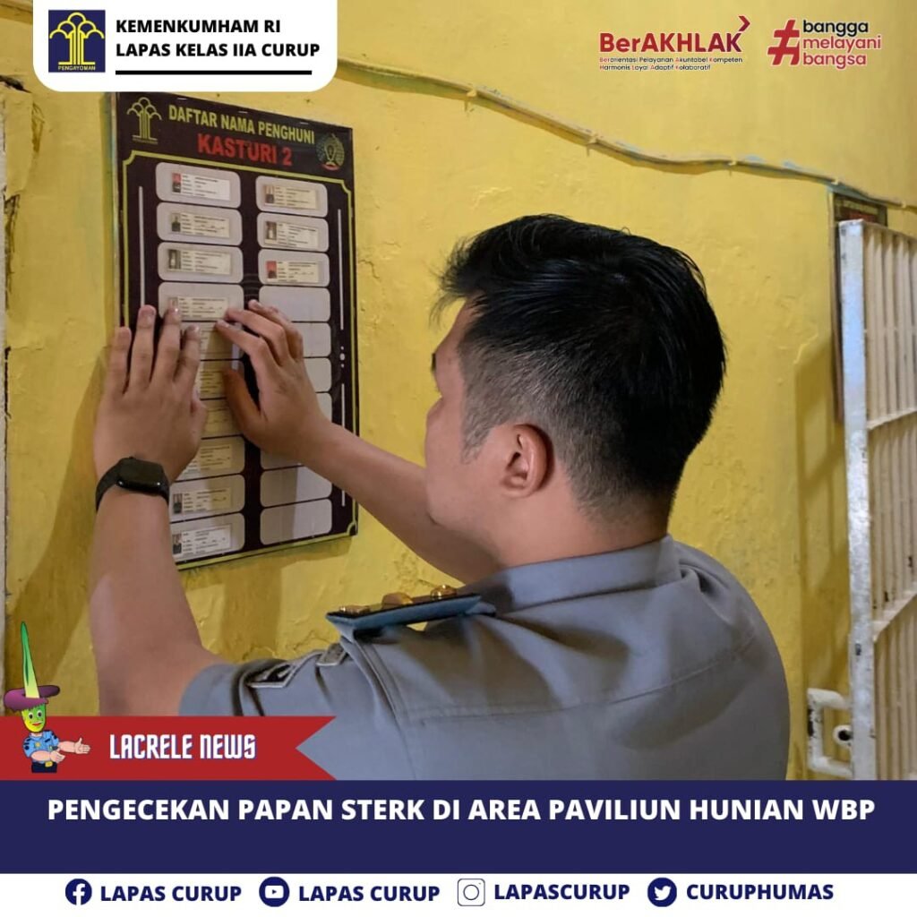 Papan Sterk yang ditempatkan di depan kamar Hunian Warga Binaan, berfungsi sebagai Papan Informasi mengenai jumlah penghuni kamar, yang berisi tentang data warga binaan seperti nama, nomor registrasi, perkara/pasal, masa pidana, ekspirasi serta foto masing-masing WBP.