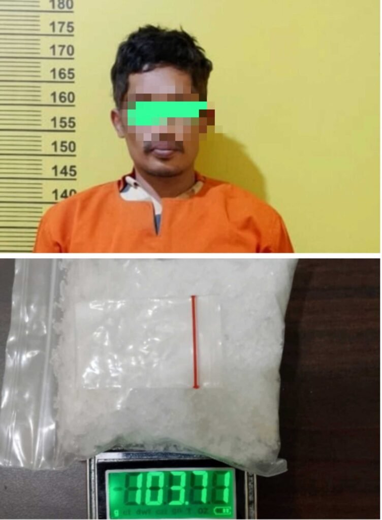 Tersangka RD Lubis diketahui warga asal Rokan Hulu yang juga mengaku bekerja sebagai petani tersebut diringkus di sebuah Pondok di Jalan Beto Dusun Bagan Ubi Kepenghuluan Tanjung Medan Kecamatan Tanjung Medan Kabupaten Rokan Hilir. Dengan barang bukti narkotika sabu seberat 103,71, gram.