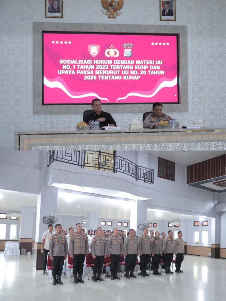 ROKAN HILIR,Derap1news – Bidang Hukum Polda Riau menggelar sosialisasi terkait pembaruan Kitab Undang-Undang Hukum Pidana (KUHP) dan Kitab Undang-Undang Hukum Acara Pidana (KUHAP) kepada jajaran Polres Rokan Hilir, Kamis (9/4/2026), di Mapolres Rohil.