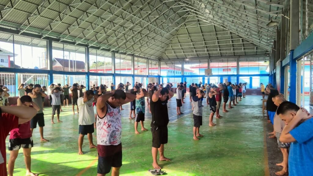 Lapas Klas II A Curup, Minggu (2/6/2024) rutin melaksanakan kegiatan senam pagi bagi WBP yang dilakukan secara terjadwal dan bergantian setiap blok hunian dalam setiap harinya.