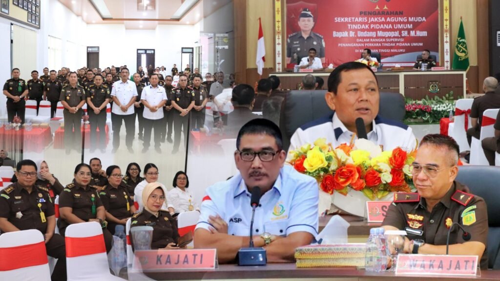 AMBON,Derap1news – Sekretaris Jaksa Agung Muda Tindak Pidana Umum (Sesjampidum) Dr. Undang Mugopal, S.H., M.Hum, melakukan kunjungan kerja ke Kejaksaan Tinggi (Kejati) Maluku, Rabu (10/9/2025). Kunjungan ini dalam rangka supervisi pimpinan terkait penanganan dan penyelesaian perkara tindak pidana umum di wilayah hukum Maluku.