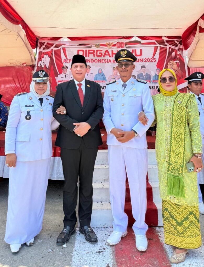 ROKAN HILIR – Ketua Asosiasi Pemerintah Desa Seluruh Indonesia (APDESI) Kabupaten Rokan Hilir, Azlita A.M.Keb, turut menghadiri upacara peringatan Hari Ulang Tahun (HUT) Kemerdekaan Republik Indonesia ke-80 yang dipusatkan di Lapangan Bola Kaki Tanjung Lumba-Lumba, Kelurahan Teluk Merbau, Kecamatan Kubu, Ahad (17/8/2025).