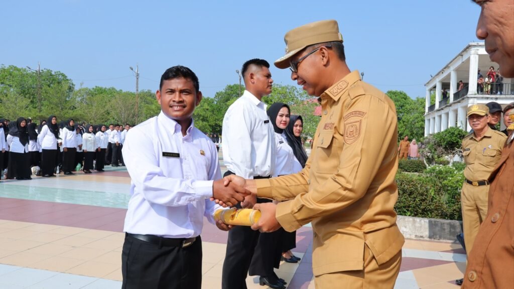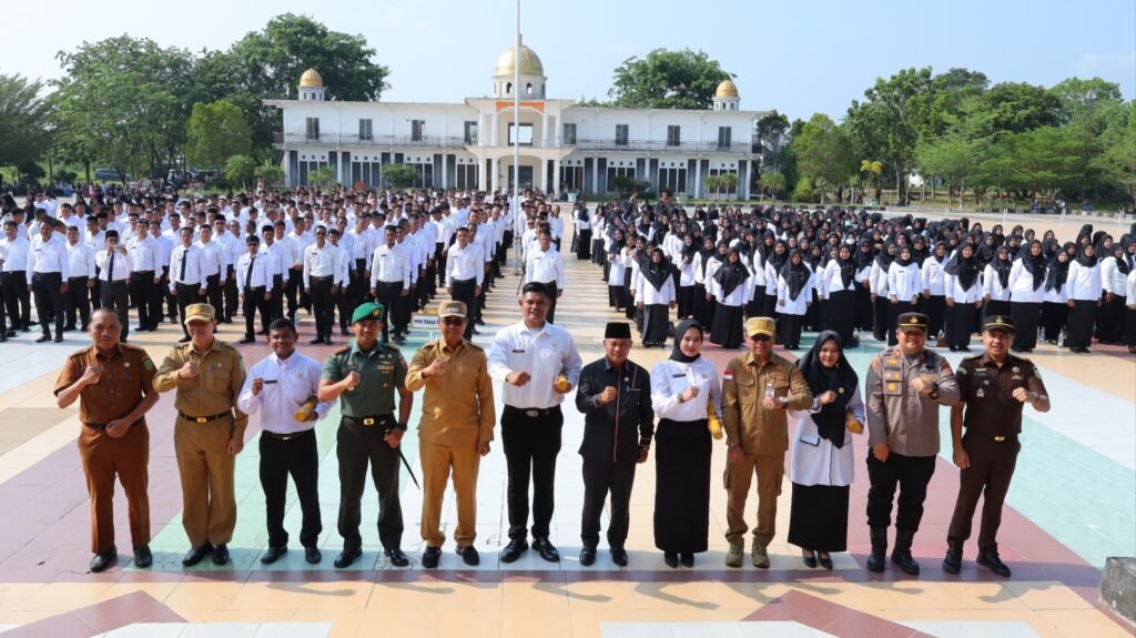 Rokan Hilir, derap1news – Pemerintah Kabupaten Rokan Hilir secara resmi melantik sebanyak 1.156 Pegawai Pemerintah dengan Perjanjian Kerja (PPPK) tahap I formasi tahun 2024, dalam sebuah upacara yang berlangsung di Taman Budaya Batu 6, Bagansiapiapi, Selasa (29/7/2025). Pelantikan dipimpin langsung oleh Wakil Bupati Rokan Hilir, Jhony Charles, didampingi Sekda, para kepala OPD, Kepala BPSDM, Wakil Ketua DPRD Rohil Basyiran Nur Efendi, dan unsur Forkopimda.