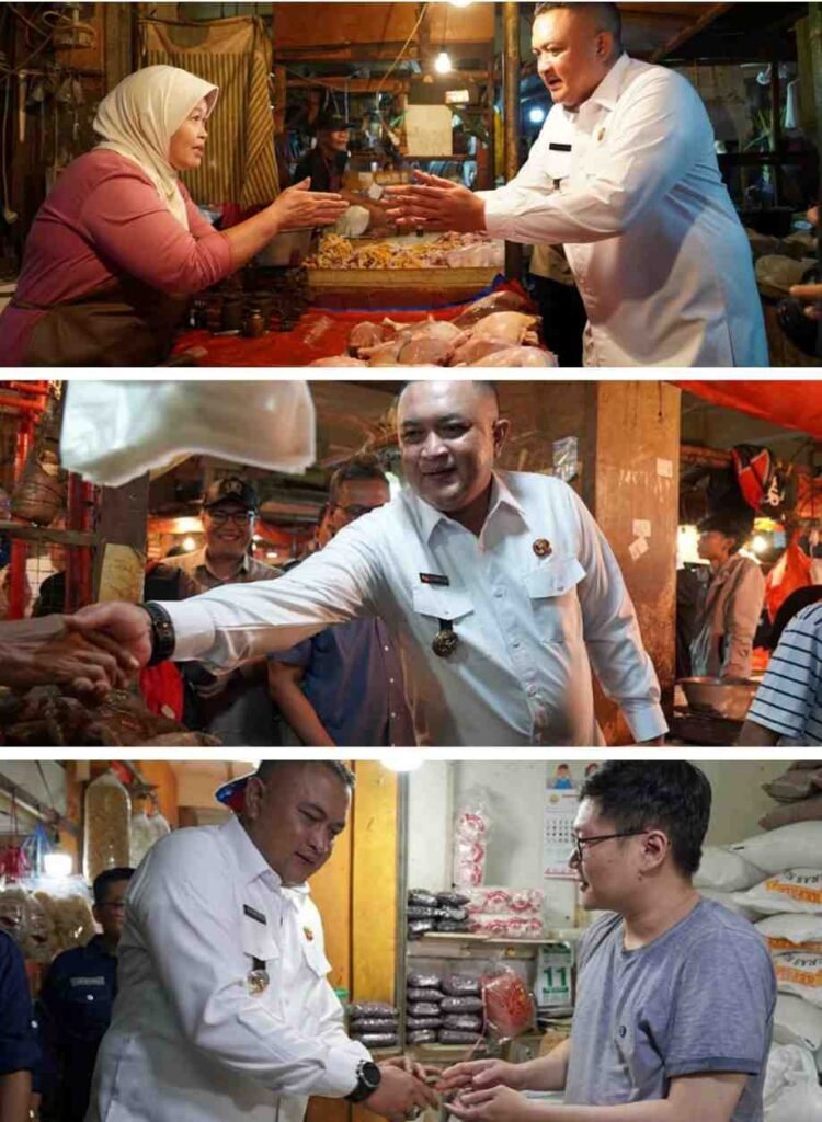 CIBINONG,derap1news – Bupati Bogor, Rudy Susmanto melakukan kunjungan ke Pasar Cibinong, pada Selasa (11/3/2025). Kunjungan tersebut dalam rangka memastikan harga kebutuhan pokok stabil, serta stoknya terjaga selama bulan Ramadhan serta menjelang Idul Fitri.