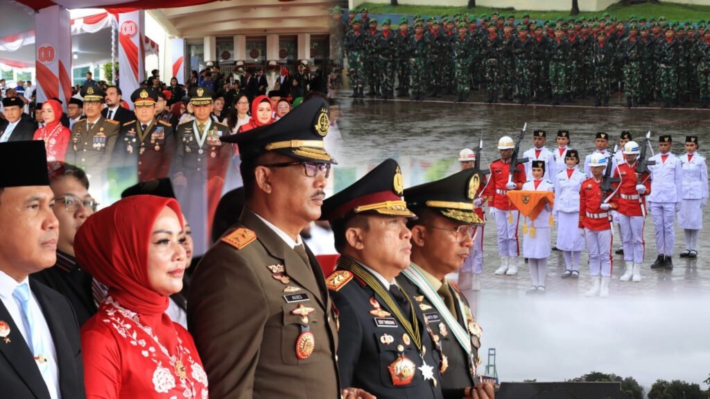 Ambon ,Derap1news – Upacara peringatan Hari Ulang Tahun ke-80 Kemerdekaan Republik Indonesia tahun 2025 berlangsung khidmat di Lapangan Merdeka Ambon, Minggu (17/8/2025). Meski diguyur hujan, ribuan peserta dan undangan tetap berdiri tegak mengikuti jalannya upacara sebagai wujud cinta tanah air.