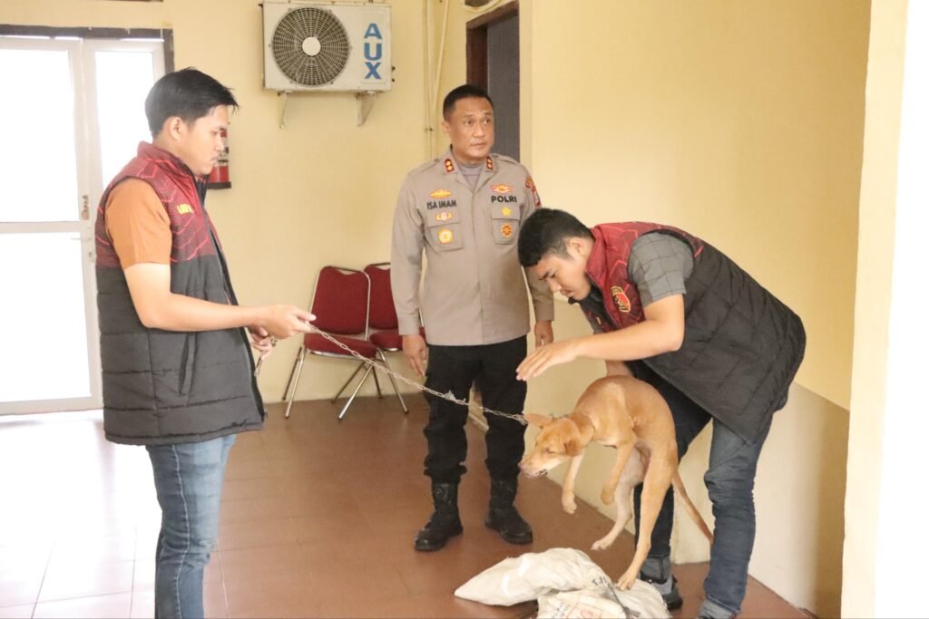 “Dari tangan pelaku, kami berhasil menyelamatkan dua ekor anjing hidup yang disiapkan untuk disembelih. Selain itu, ditemukan juga organ dalam anjing berupa hati dan usus yang sudah direbus,” ungkap Kapolres.
