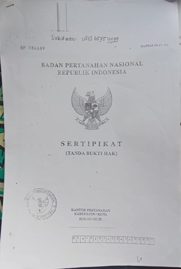 Dok.Surat Sertifikat Milik Pemda Rohil .