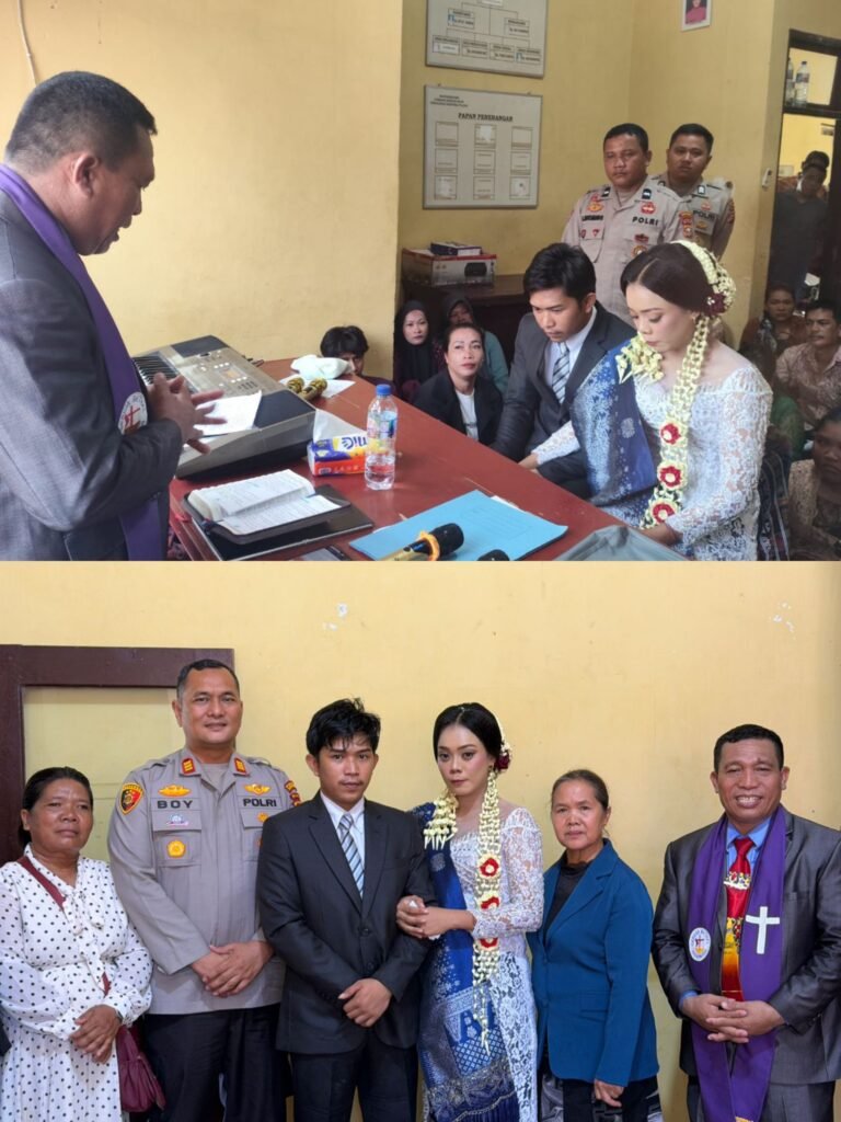 Rokan Hilir,Derap1News – Sebuah peristiwa tak biasa terjadi di Aula Mapolsek Pujud, Kabupaten Rokan Hilir, Selasa (14/4/2026). Seorang tahanan tetap melangsungkan pernikahan secara sah di tengah keterbatasan ruang gerak, dengan pengawalan ketat aparat kepolisian.