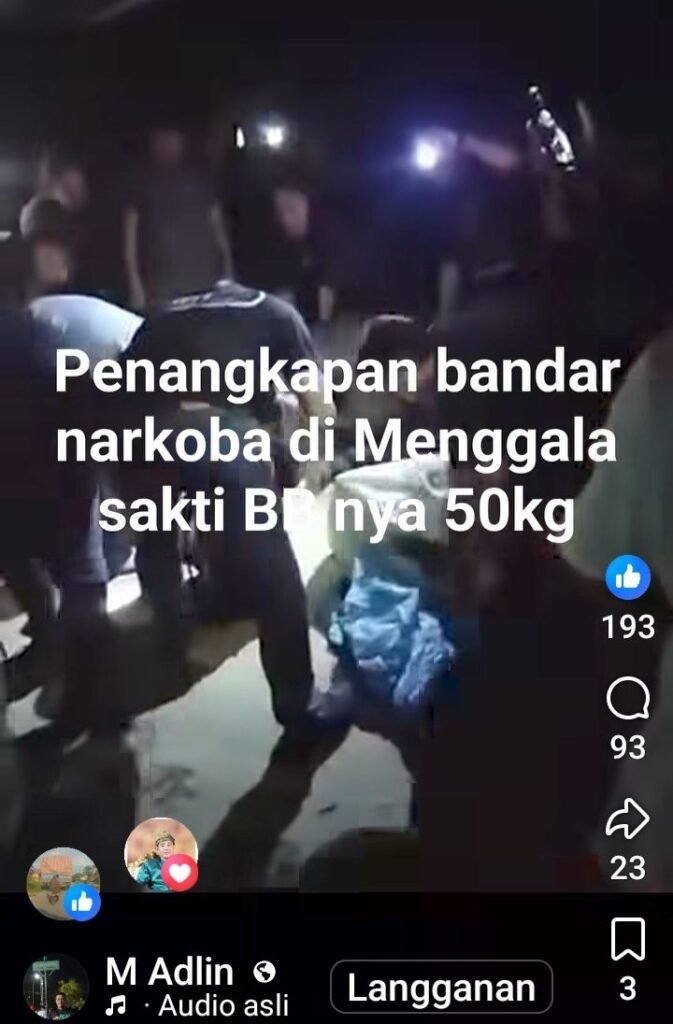 Pemilik akun dalam keterangan unggahannya menuliskan, “Penangkapan bandar narkoba di Manggala Sakti, BB-nya 50 Kg.”