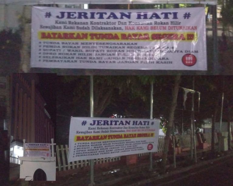 Beranda / Rokan Hilir / Kontraktor Rohil Protes Tunda Bayar, Spanduk Kritik Terpasang di Sejumlah Kantor Pemerintah